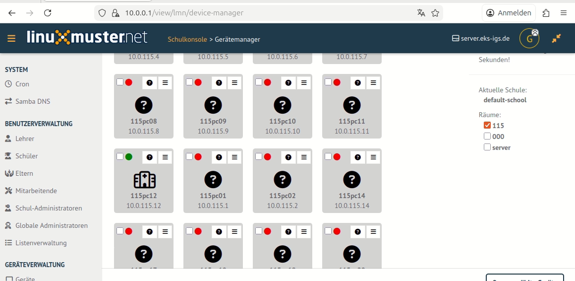 Wie Du siehst, wird der PC 115pc12 einmal als hochgefahren angezeigt und einmal nicht, obwohl ich ihn per Linbo-ssh erreiche.