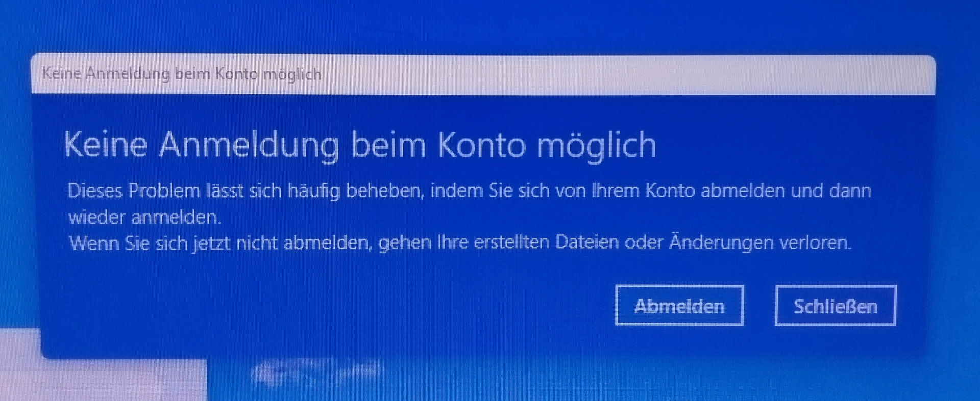 ich kann mich als benutzer nicht mehr anmelden (fenster: anmeldung beim konto nicht möglich. tipp: ab- und anmelden hat nix gebracht)