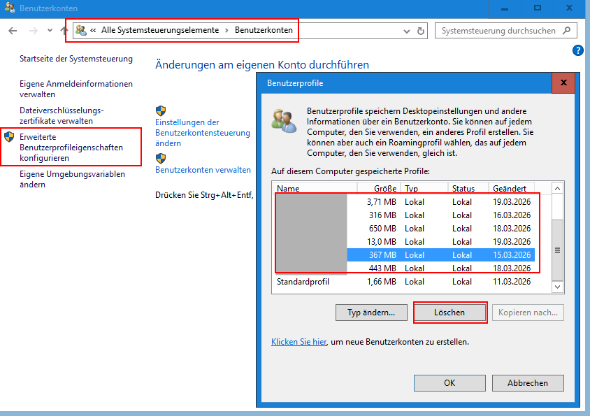 wie genau hast du die bestehenden Nutzerprofile gelöscht?