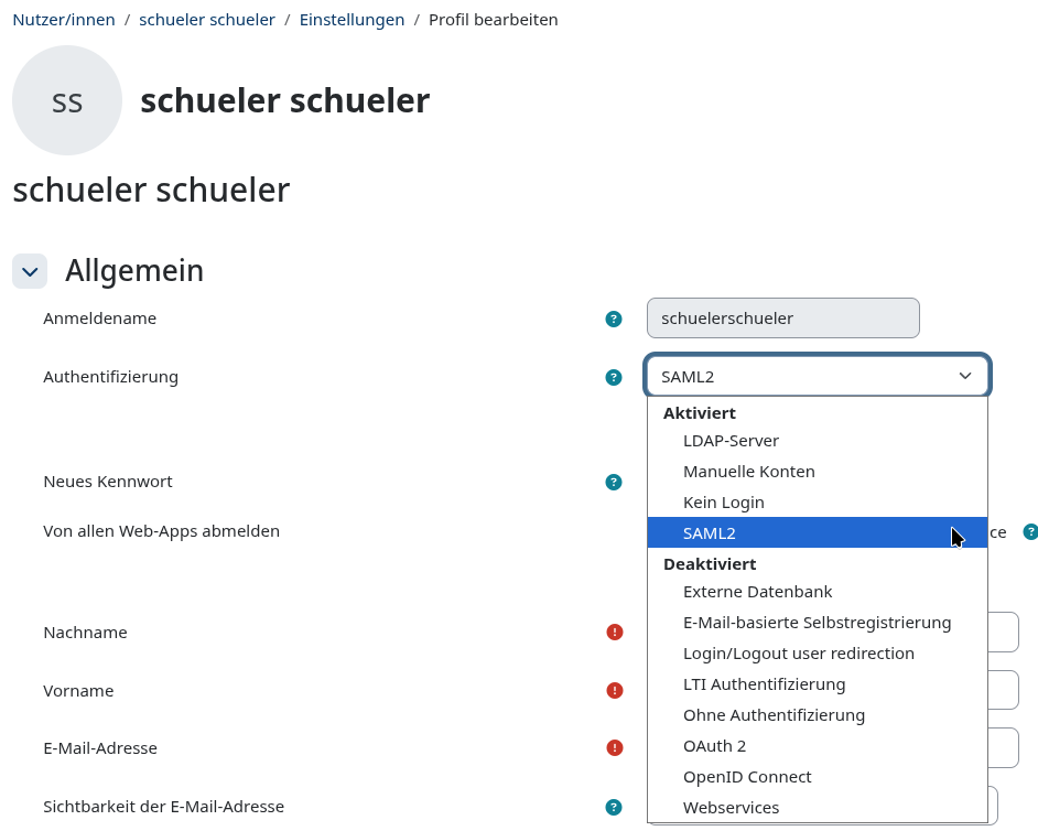 Leider läuft zum Schuljahresbeginn noch der LDAP sync via auth_ldap, damit man nicht warten muss, bis sich jeder user zum ersten mal bzw. zum neuen Schuljahr neu eingeloggt hat, damit die gruppe/klasse aktualisiert wird. Das auth_saml2 hat da leider nix eingebaut und das via API zu machen hatte ich bisher keine Zeit.